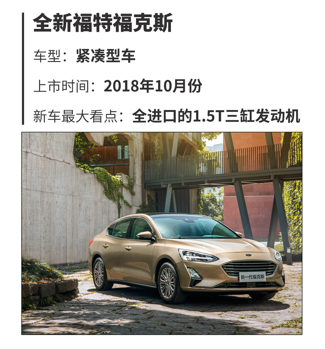 从全新福克斯的造型上可以看出它依旧注重运动操控的格调,紧凑运动。内饰方面则较现款更注重用料质感,看上去显得更有档次。而且车身尺寸有一定增加,理论上也会为它原本被视为短板的车内空间有一定的改善。动力总成是全新福克斯最大的升级之处;其中全进口的1.5T三缸发动机和8AT的变速箱是新福克斯性能最强的动力单元,而为了适应不同需求的消费群体,新车也具备1.5L三缸自然吸气和1.0T三缸涡轮选择。新的1.5T发动机在动力输出层面可以说是是同级别车型中的标杆水准,操控也是不错。预售价11.58万元起与现实正式售价的起步价相同,估计全新款车型上市后会比现款更低价,值得期待。