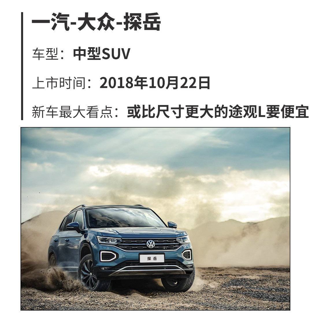 一汽大众旗下第二款SUV,也是真正意义上打开一汽大众SUV车型战略布局的一款全新产品,定位为中型SUV的探岳,将会跟上汽大众的途观L在合资品牌中型SUV市场中进行同场竞技;只是尺寸相较于途观L有着明显偏小一圈的事实也许会影响消费者对它“中型SUV”定位的看法。探岳的配置也算得上十分丰富,液晶仪表盘,更新一代的多媒体系统等配置都出现在这款车型当中,有着品牌光环效应和更受欢迎的定位,想必探岳的市场预期将会一片光明。