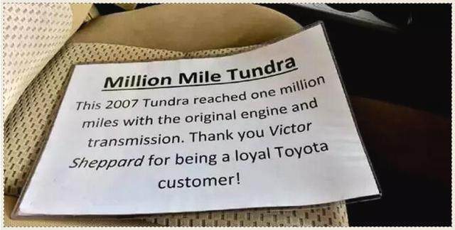 在2016年爆表的时候,丰田自己也没有想到坦途居然能这么耐用,于是回收了这台坦途让工程师来研究其耐用性,并且给了车主一台全新的坦途。
