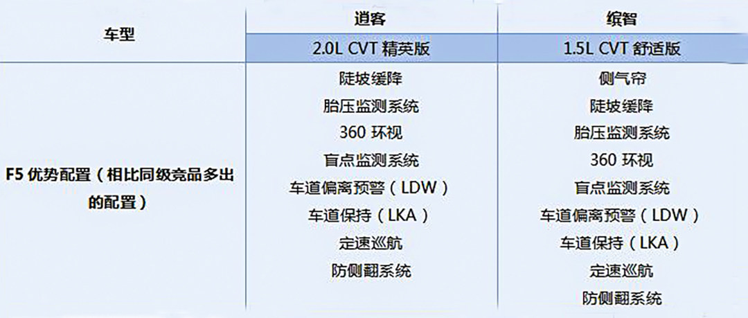 首先在配置部分,全新哈弗F5表现出来的优势较为明显,新车配备了360环视、车道偏离预警+车道保持、侧安全气帘、盲点监测系统等安全装备,而在舒适性配置方面,还拥有4G智能互联、12.3寸全液晶仪表、主8、副4电动调节以及全景天窗等功能。在同价位区间,对比同级逍客2.0L CVT精英版以及缤智1.5L CVT舒适版,全新哈弗F5表现出来的优势相当明显。