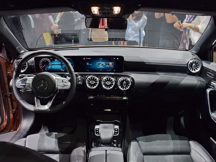 三厢A级的内饰没有因为紧凑型的定位而放低标准。在S级上的方向盘和贯穿式仪表中控都在A级上看到,经典的镀铬式出风口也没有消失,而且还加上了越级的双片式天窗。如果不是木纹饰板的缺失,很难察觉出这是一台A级。
