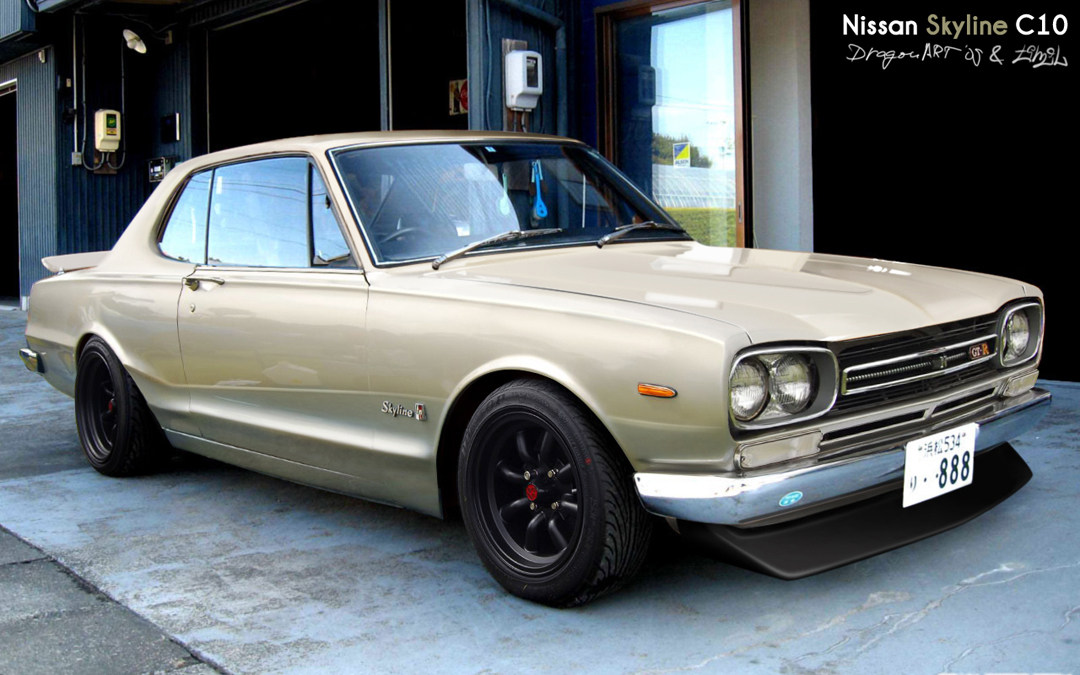 在Prince公司与日产合并两年后,内部代号为C10的第三代Skyline车系诞生,而首款使用日产汽车标志的Skyline GT-R就是其中最顶级的性能版本,其定位于赛道性街车。第一代GT-R在1968年10月的东京车展上亮相,并与1969年2月推出市场,最开始仅仅只有普通的四门轿车一种车身形式,而到了1971年双门轿跑车造型被推出。