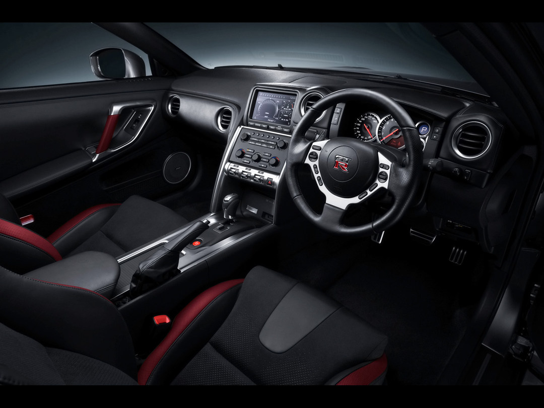 内饰方面,R35依然传承GT-R的“简朴”,仪表方面是用全新设计,中置转速表也是目前性能车的必备元素,此外,中控顶部依然有显示屏,显示车辆的动态数据,音响和空调面板简直就像后加上去一样,下方的三个按钮可以调节车辆的四驱系统,车身稳定系统和悬挂的工作,车内唯一的娱乐系统是BOSE音响。