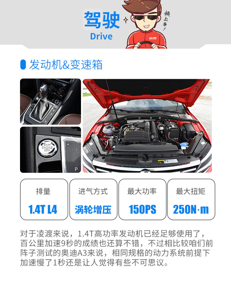 凌渡行驶起来是偏向舒适的风格,转向不算精准,转向力度也比较轻,适合在城市日常驾驶,而动力系统的平顺性也做得不错,低速时略微有些粘滞感,不过还是很好开的。相比较合资车型来说凌渡操控感觉好了不止一点。