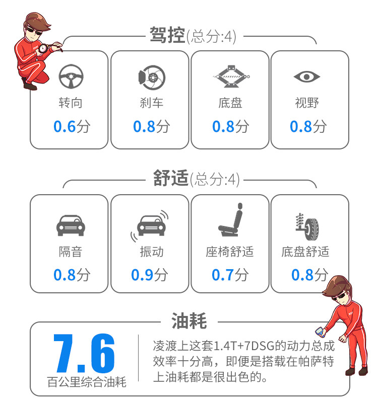 正如我们预想的一样,凌渡最后的评分并不算高,价格则是凌渡评分偏低的原因所在,凌渡的性价比相比较朗逸、轩逸甚至思域来说都不算高,它的卖点也就在轿跑外观而已。整车的表现仍然是偏舒适的,虽然底盘和车身动态上仍然有大众那一份沉稳,不过在价格面前优势也不算明显了。