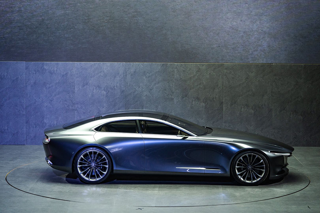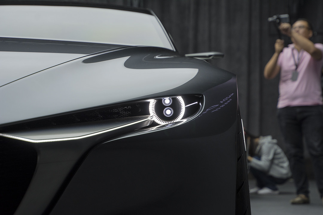 作为本次设计交流论坛的重点发布环节,幕布揭开后初露真容的VISION COUPE并没有赋予编者特别强烈的视觉冲击力,但随着旋转舞台的运转,聚光灯的光在它身上缓缓走过之时,层次丰富的光影变化显示出车身钣金的多维度立体感就得以显现,根据前田先生的说法,这种通过简约的立体结构体现出来的“减法美学”,便是马自达未来设计的大方向所在。