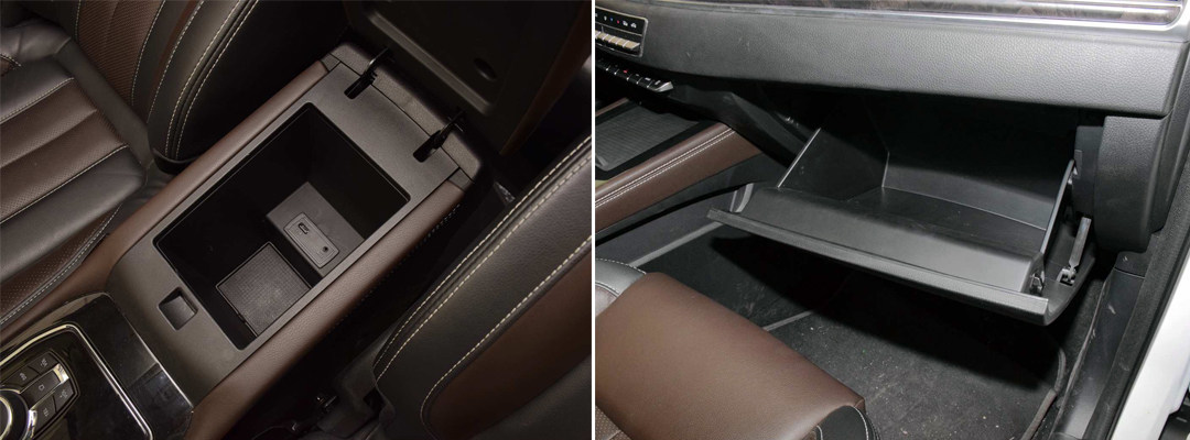 前排设置的储物格充足够用,杯架和细小的储物格使用便利。