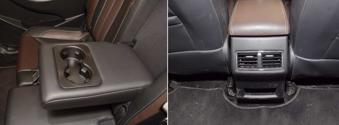 第二排的中央扶手也有来两个杯架,车门内侧的储物空间也不小,而且它带有第二排空调出风口,下方则有一个储物格,还有后排的中央地板是全平的。