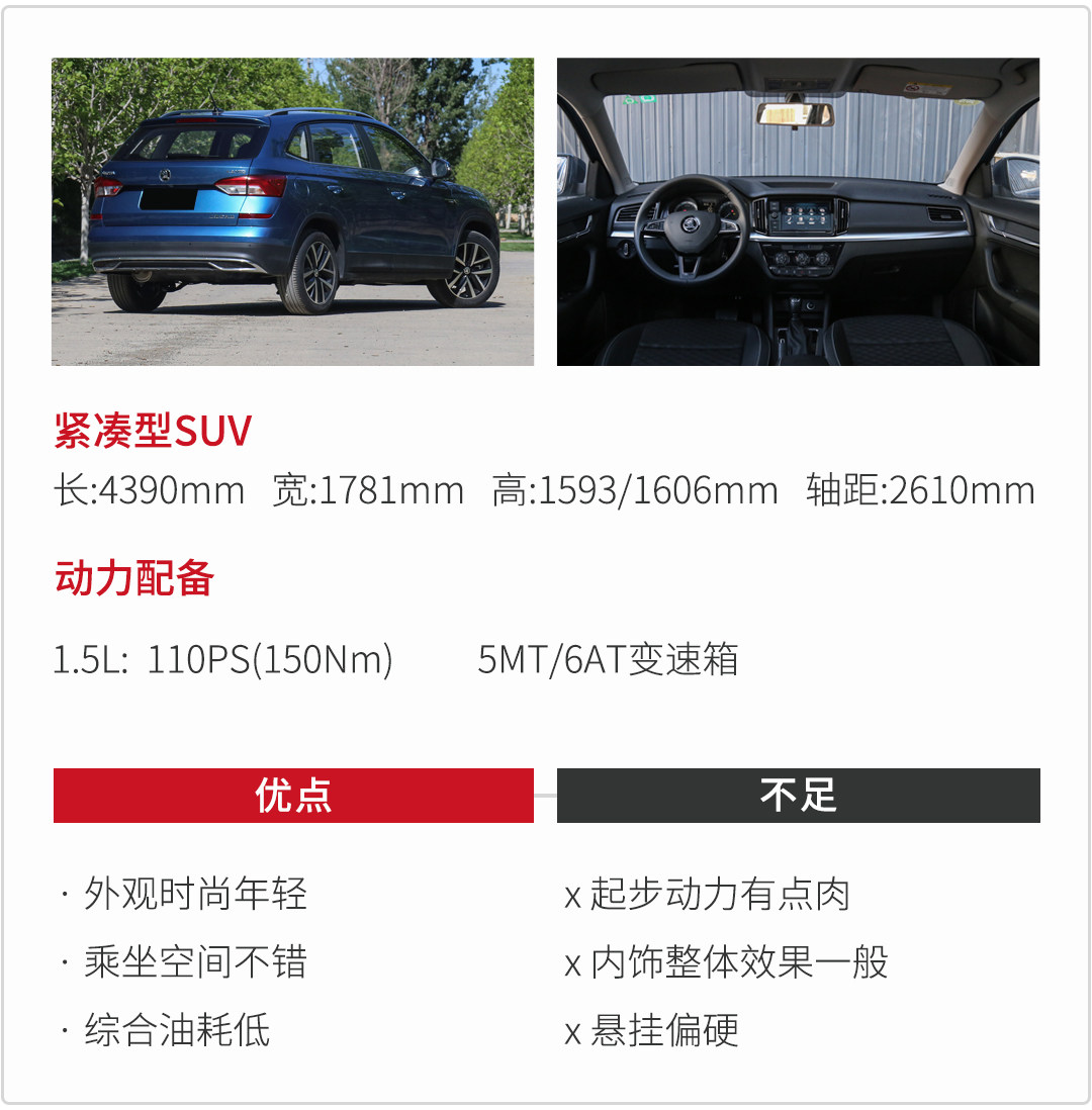 虽然斯柯达官方把柯米克定位为紧凑型SUV,但由于低自己兄长柯珞克半个级别,而且也只卖小型SUV的价格,所以很有人会误以为它就是小型SUV,但实际上我们从它的空间表现来看,无论是乘坐空间还是后备箱空间,都绝对不输任何一款小型SUV,甚至还比以空间见长的缤智或XR-V还要出色一点。而底盘也有不好厚重感,内饰的视觉好过很不错,很大众,只是材质方面逊色点。