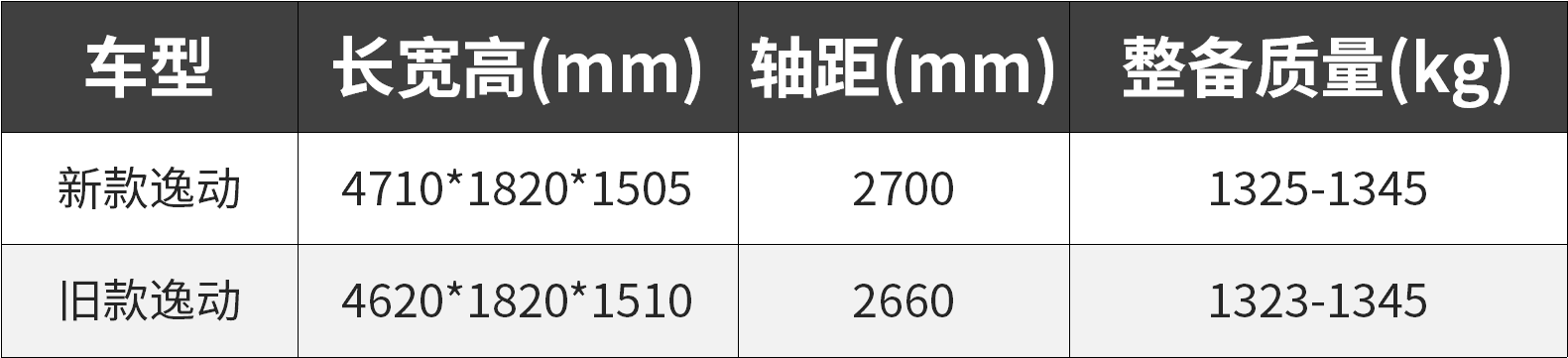 全新一代的逸动的车身尺寸和轴距都经过了加长,车内的空间更加宽裕,但是车身重量并没有明显增加。这是得益于全新一代逸动的车身用料和工艺的进步。