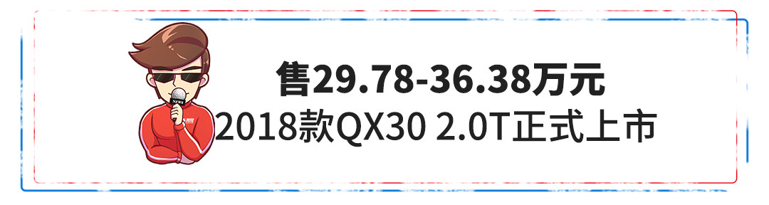 日前,2018款英菲尼迪QX30 2.0T正式上市,新车将提供一种动力共计2款车型,售价区间为29.78-36.38万元。新车主要增配后排出风口、无钥匙进入等装备,此外还提供3种内饰套装供选配。对比于雷克萨斯,英菲尼迪在产品力方面相对弱一些,加上30万的起售价,实际竞争力稍显不足。