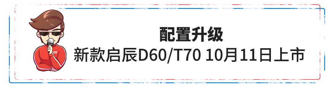 日前获悉,2019款启辰D60和T70将在10月11日武汉车展开幕期间正式上市,届时全新小型SUV启辰T60也会一并亮相。据悉,新车仅针对配置进行调整,外观内饰将不会出现大幅度的变化。新车会给出一个极具诚意的售价吗?值得期待。