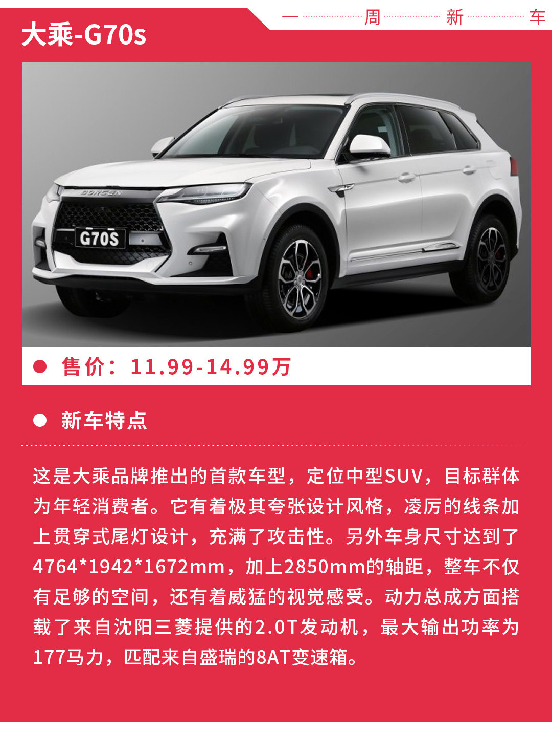 那么它们究竟是怎样的车型?有着怎样的表现?马上开始我们这周的一周新车。