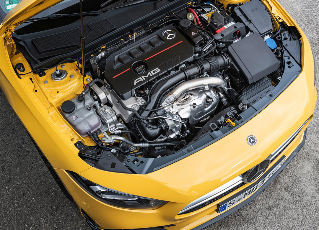 打开发动机盖,映入眼帘的AMG三个大字已经能让人激动好一阵子。一直到今天,奔驰AMG发动机都秉承着一人一机的原则,每一款发动机上都会贴有安装工程师手写签名的铭牌,可谓专属感满满了。不得不说,在德系选手里面,奔驰AMG对于发动机调校是很有一手的,还记得那款代号为M133的2.0T机王吗?就是出自AMG之手,小小的四个气缸竟然压榨出了381匹马力,475牛.米的恐怖动力,使得A45以仅仅4.1秒便完成了百公里加速,十分夸张。在A35上,AMG部门再次化腐朽为神奇,将搭载于普通A级上的M260 2.0T经过重新调校,最后将动力定格在了306马力,400牛.米,比原来足足提高了85马力和50牛.米,百公里加速为4.7秒,虽稍逊于大哥,但已足以让一众街车不敢随意挑衅。而显然,这款发动机的极限还未到达。
