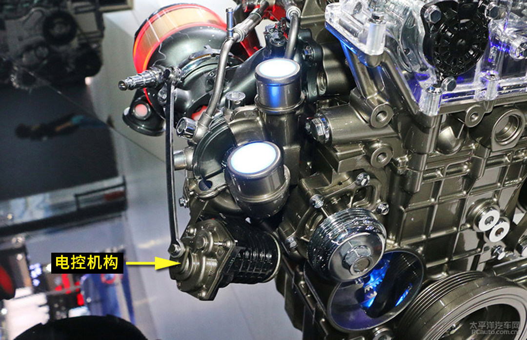 此外,M260发动机还使用了电控式涡轮增压器泄压阀。传统的机械式泄压阀是利用真空盒内的压力差来顶开泄压阀的活塞,从而将压力卸掉,但这种控制方式存在迟滞,响应不够快。相对而言电子泄压阀则响应更迅速,当检测到压力达到一定的临界值时,ECU便可迅速做出响应,及时将泄压阀们打开,控制也更加精准。此外,冷却系统中的节温阀也升级为电控节温阀,灵活调节流经气缸套的冷却液温度,保证发动机在最合适的温度工作。