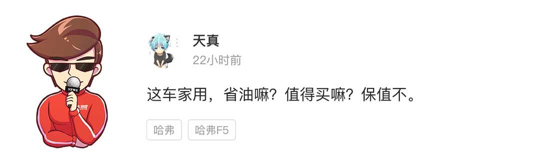 官方宣称哈弗F5是专为新时代的新新人类打造的潮流SUV,是有别于以往哈弗车型给人或稳重或豪华的风格,从全新样式的外观就可见一斑,密集的点阵排布的中网格栅运动气息油然而生,分体式的尾灯与后包围的三个倒梯形的装饰件别具一格;高智能化的网联系统才是哈弗F5最浓墨重彩的一笔,囊括了7*24智能私享管家、全时专属人工坐席服务、语言识别能力高达97%的语音交互系统、畅享百兆光纤等功能,至于动力总成则依然熟悉的1.5T+7DCT,后期油耗依然是个硬伤,但是TCU和ECU经过优化后,动力的滞后性得到一定程度的改善。