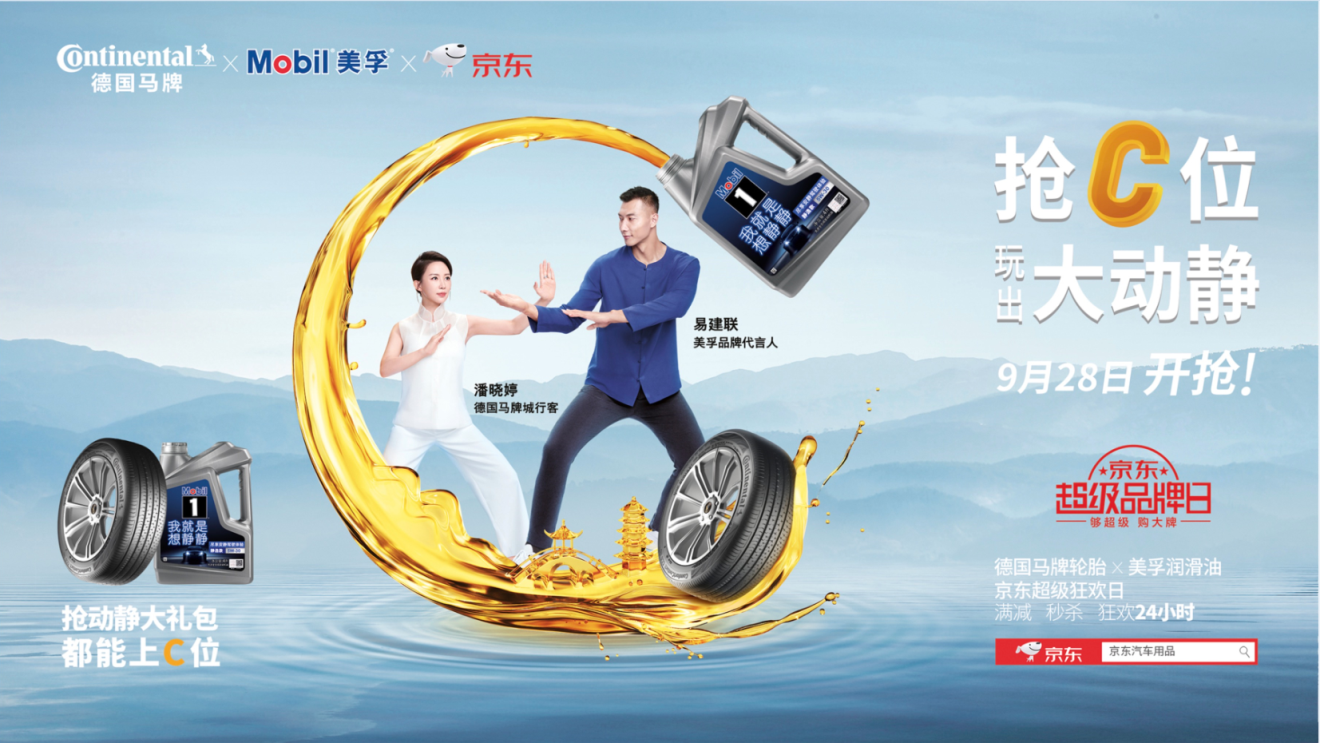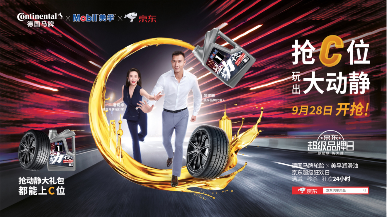在9月28日共同上线京东超级品牌,美孚润滑油与德国马牌轮胎这两位大咖将首次携手,为提升用户在行驶过程中的动力及静音体验,共同推出了“动静大礼包”,还有各种满减和秒杀活动,狂欢24小时。