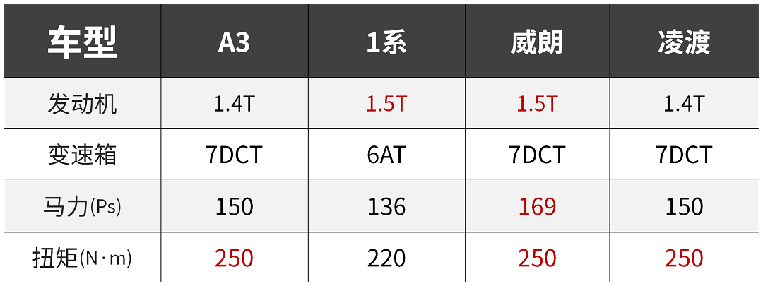 动力方面,奥迪A3标配1.4T的EA211发动机,150马力,25N·m,有趣的是跟凌渡的1.4T是一样的,因为它们都出自大众MQB平台,凌渡新款还有个低功版本,而威朗的1.5T账面数据会更出色,而宝马的1.5T,日常使用以及足够,不乏力。