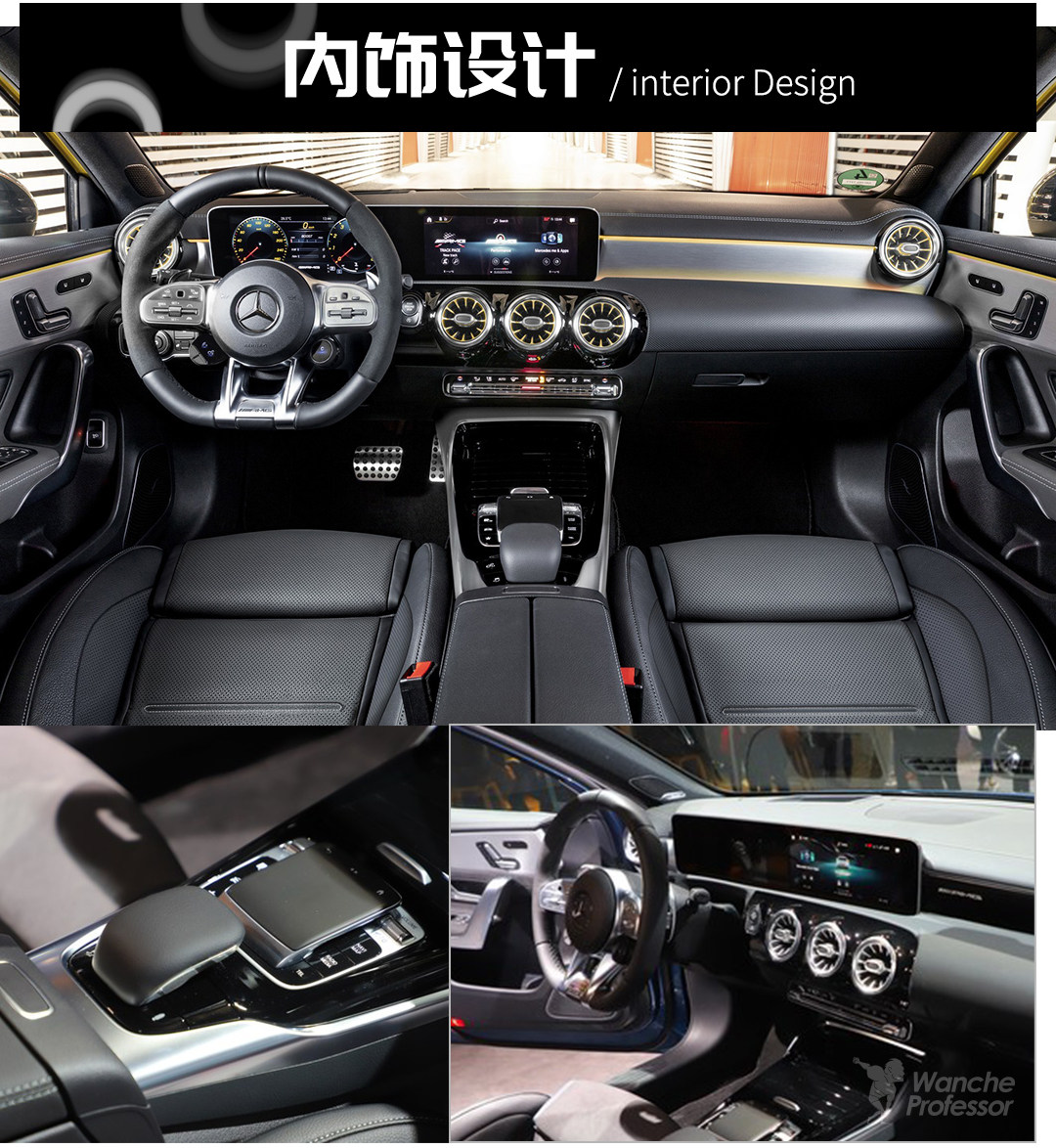 也不知是否德国人受到了后现代主义色彩的影响太重,许多纠结中的矛盾都刻意透过更为精细的安排,试图通过两头的极端,再配点斯图加特的魔法来将二者完美地结合在一起。类似的思想情绪在新一代奔驰车型的内饰上体现得尤为明显,特别是全新梅赛德斯-AMG A 35,与其说在做内饰,不如说奔驰做的就是一套氛围。全新A35 AMG的内饰整体造型与普通版车型基本保持一致,除了在方向盘、油门刹车踏板以及以及个别地方采用金属材质,以强调运动感觉外,像在中控饰板、空调出风口以及门板位置都有着与车身同色的点缀。此外换装了一套更贴合人体包裹的运动型桶椅了。可以说在原有的科技、豪华感基础上再作出细微的调整。