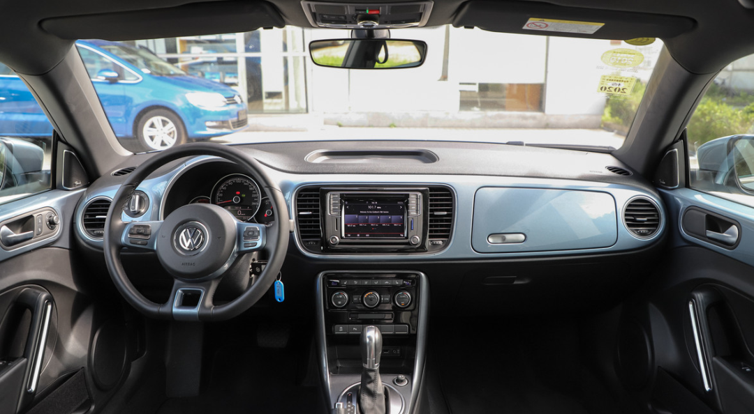 甲壳虫的内饰设计与外观造型相似,也采用了大量圆滑的线条,方向盘为三辐镂空设计,辐条与外圈非常纤细,不会给驾驶者带来沉重感,仪表盘为半圆设计,其中包含三个机械仪表盘以及最中间的数字显示屏,中控功能控制多采用旋钮设计。座椅为皮革材质,但可惜只配备了手动调节,后排得益于整车造型设计,在头部有留有比较宽敞的空间,但腿部空间则显得有些紧凑。
