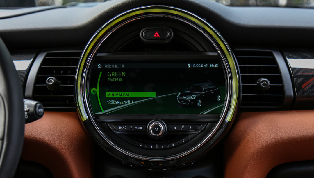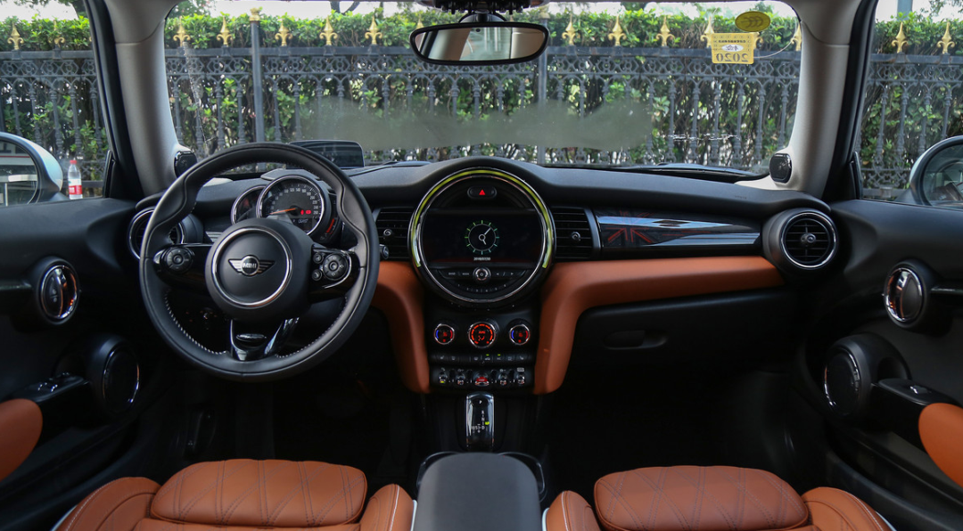 MINI的内饰造型算是该车型最大的亮点,圆形的中控非常吸引眼球,中间为液晶屏幕与功能按键,外圈有镀铬条与氛围灯装饰,下方的机械按键与旋钮设计也别具一格。仪表盘与甲壳虫的有些相似,没有了外边框的包裹令仪表盘增添了几分复古的味道,方向盘采用皮质包裹,手感自然是好的没话说。座椅皆采用浅棕色皮质材料,搭配菱形缝线工艺,整体与该车英伦风格主题十分契合,而且前排座椅带有电控调节,舒适度非常不错,后排座椅空间稍显紧促,不太适合男性乘客。