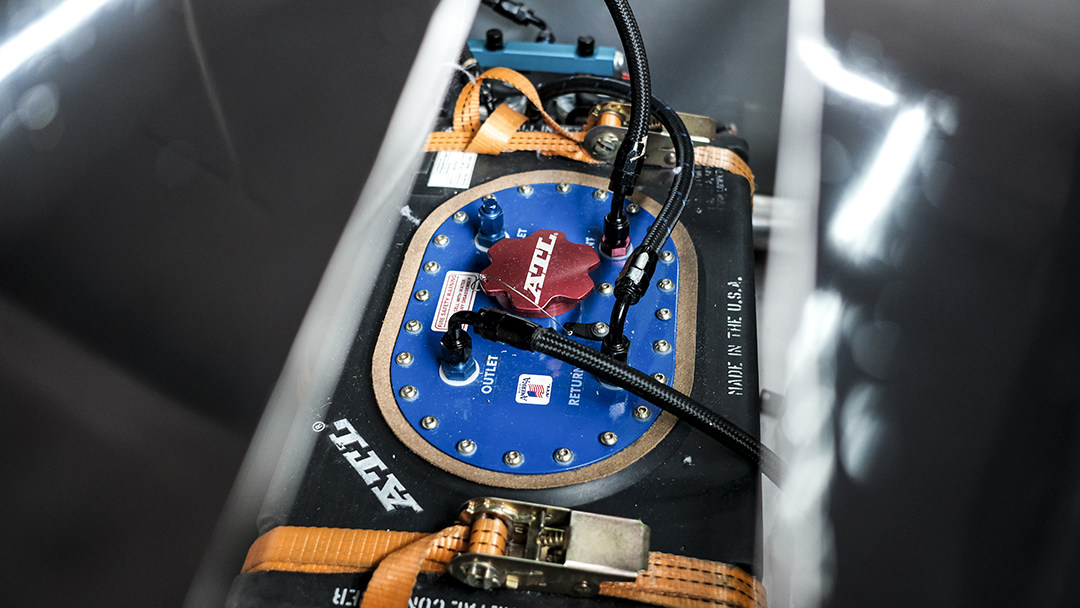 不过,在一台赛车体内,最具危险性还属那一缸燃油,在面对剧烈碰撞时,泄露的燃油很可能会与高温的引擎、刹车或排气管接触、燃烧,直接威胁车手的安全,而碰撞后燃油泄露引发的熊熊大火也是几十年前赛车事故中使车手不幸丧生的主要原因之一。如今,赛车手除了需要穿着全套防火赛车服、手套、头套等装备之外,车上也配备有一键灭火系统,不过最根本的防止赛车燃油泄露起火的途径,还是专业的防爆油箱。
