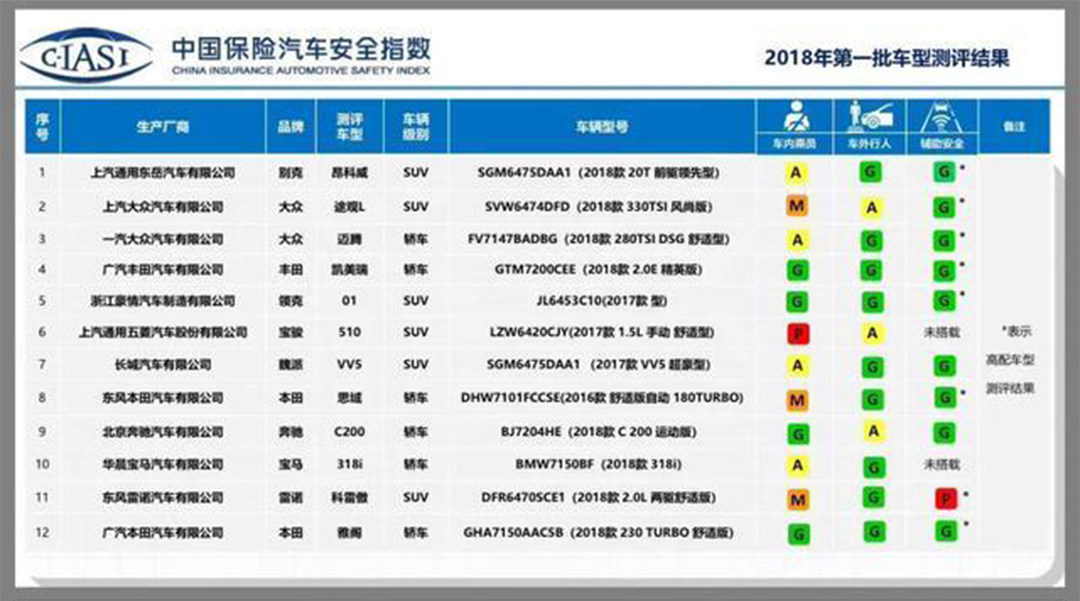 近中保研汽车技术研究院有限公司(CIRI)主导、中国保险业协会和重庆中汽研共同制定的中国保险汽车安全指数(C-IASI)就带了一份名单给我们: