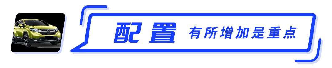 上面说了新款CR-V在外观内饰空间都没怎么变,那它到底改的是什么?没错,就是老套路,增加配置,这也是本次改款车型的重点。
