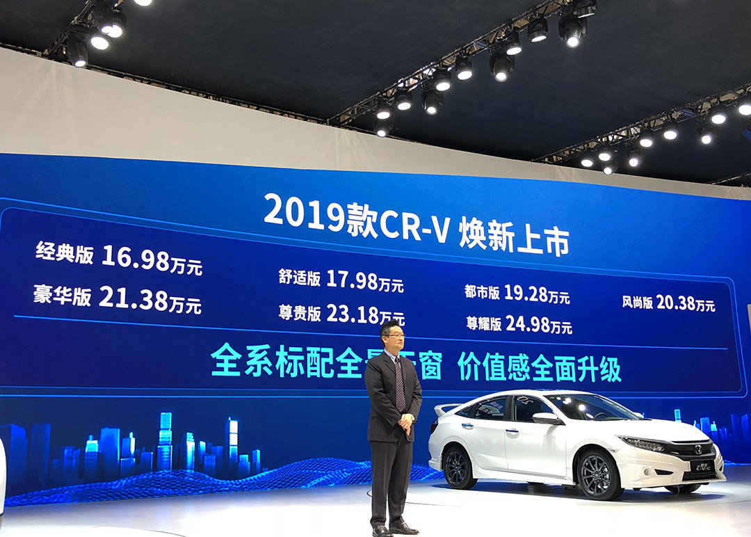 日前,2019款CR-V在武汉车展进行改款上市,新款售价为16.98-27.68万元,其中燃油版车型售价为16.98-24.98万元,价格不变;混动版售价为22.18-27.68万元,因为配置的增加与新车型的加入,售价有一定的上涨。