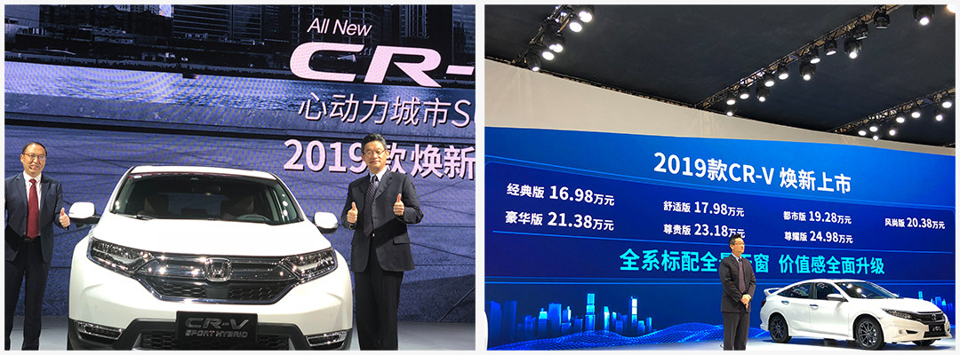 10月11日,2019款本田CR-V在武汉车展上进行年度革新款型上市,全系指导价格为16.98-27.68万元;主要在配置层面针对部分车型进行了升级,大致为1.5T入门版车型增加了全景天窗,2.0L混动版本有两款车型新增了Honda SENSING安全超感系统、且增加一款顶配的混动四驱版本。除此之外,本田官方还在现场推出一款思域的十五周年纪念版,主要在原车基础上增加原厂提供的官方套件,使得视觉效果更具运动感。