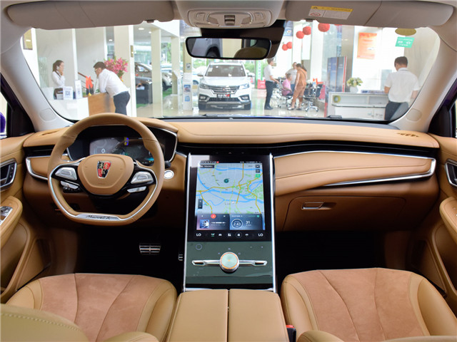 MARVEL X内饰的设计和用料相比之前的荣威新能源车型都拉开了档次,车内采用了浅棕色为主色调,提升整体豪华感。而整个内饰最为抢眼的设计,毫无疑问就是19.4英寸超大尺寸的中控液晶显示屏,以及12.3英寸的全液晶仪表,它搭载了最新的斑马智行3.0系统,主打的依旧是互联网和车联网功能,除了智能语音控制娱乐系统这些基本操作之外,还能够在仪表盘中实现AR增强现实技术,比如AR实景导航等等。