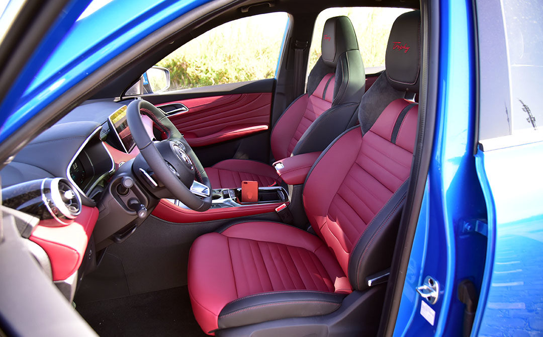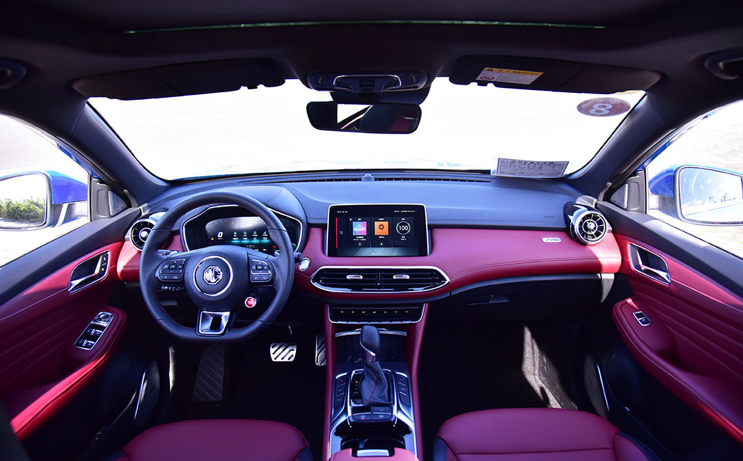名爵HS采用全新的沉浸式环抱座舱设计,红黑配色非常的亮眼,符合年轻人的审美。难得可贵的是,整个内饰触手可及的地方大面积采用了真皮包裹,手感一流。