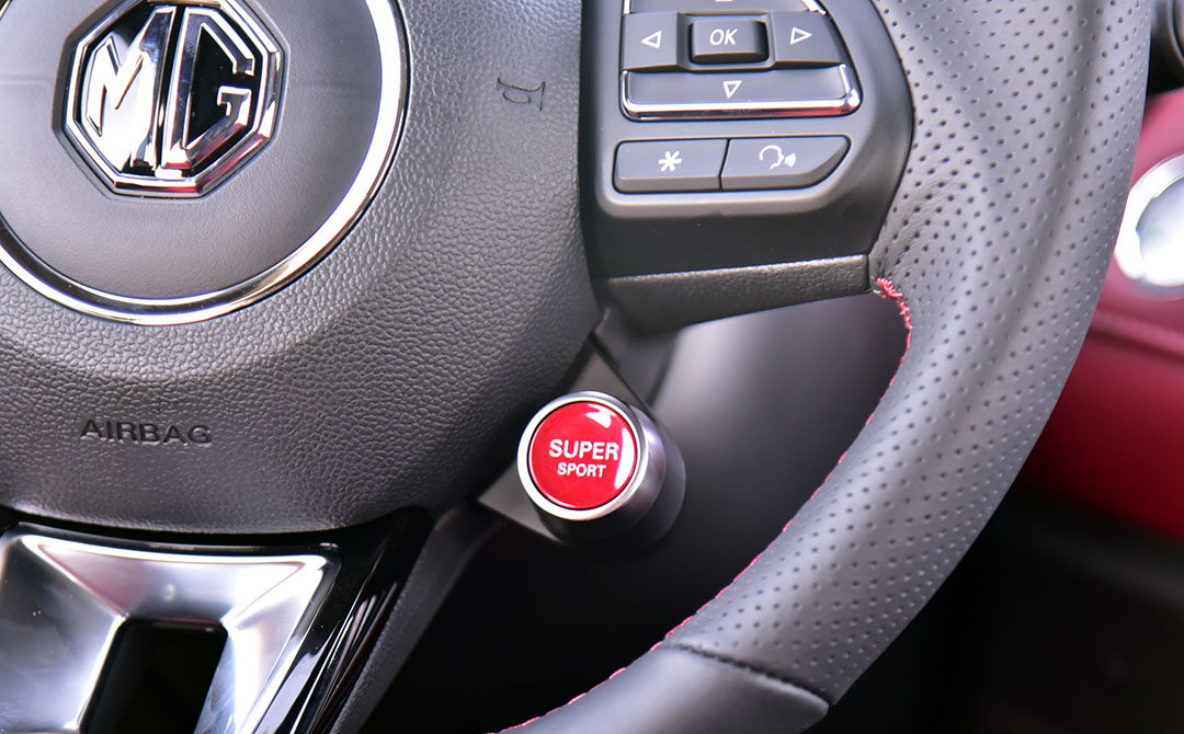 内饰上还有个细节非常醒目,就是这个红色的“SUPER SPORT”按键。原本是在超级跑车上面的一个设计,而在名爵HS上则是一个超级运动驾驶模式,启动之后仪表盘有一个非常明显的变化,实际启动后的驾驶感受下面再看。