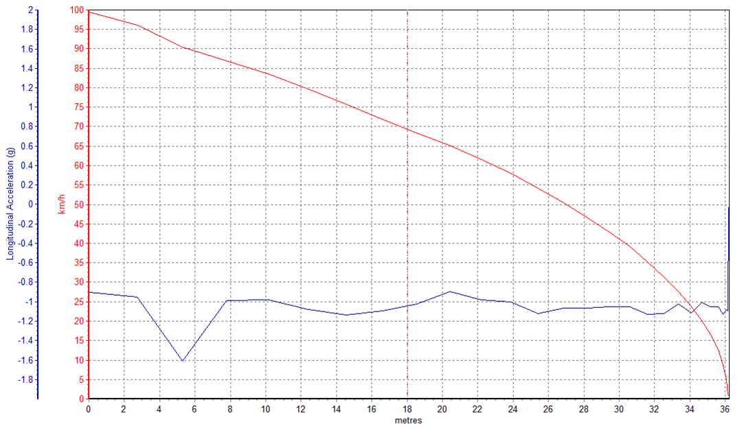 光有加速还是不行的,刹车才是行车安全的最重要保证,测完加速自然也要测刹车了。我们知道SUV由于车身重,惯性大的原因,刹车自然比不上轿车。但是名爵HS的百公里刹车成绩为36.65m,一般车型能进入39米已经算是表现及格 了。当然这两个成绩受环境的影响会有一个的差异,但是名爵HS在性能上的表现是毋容置疑的。
