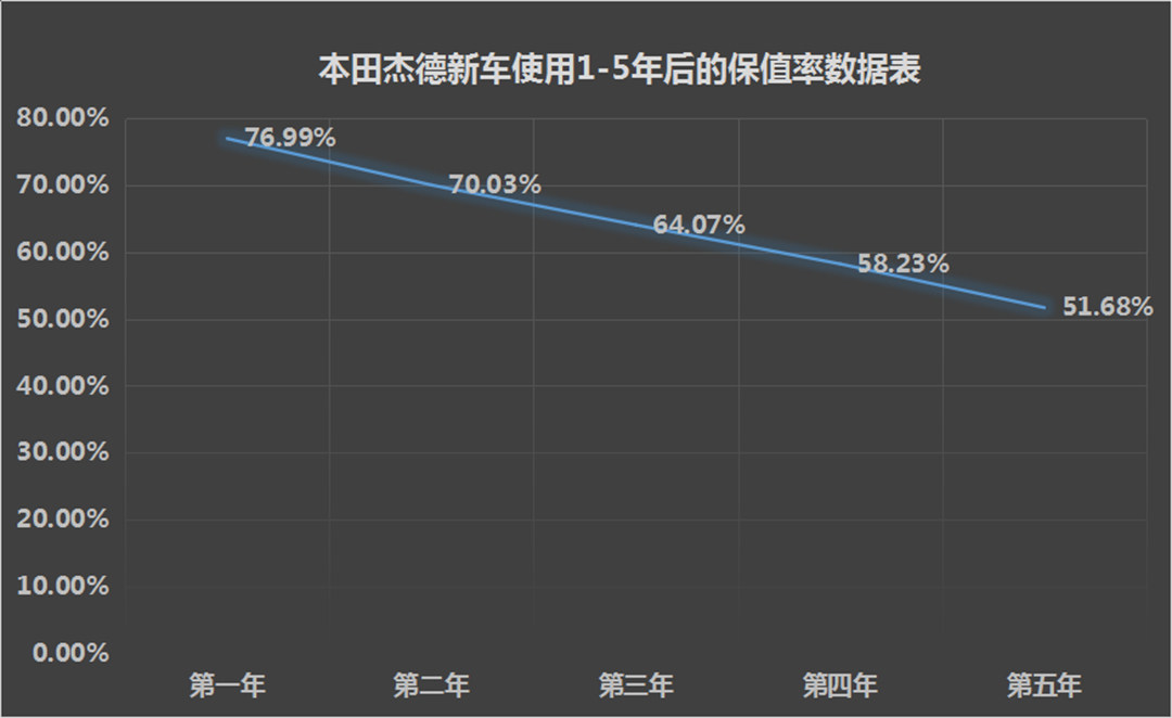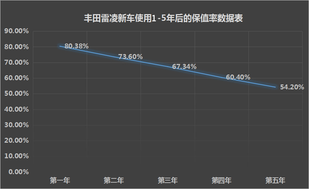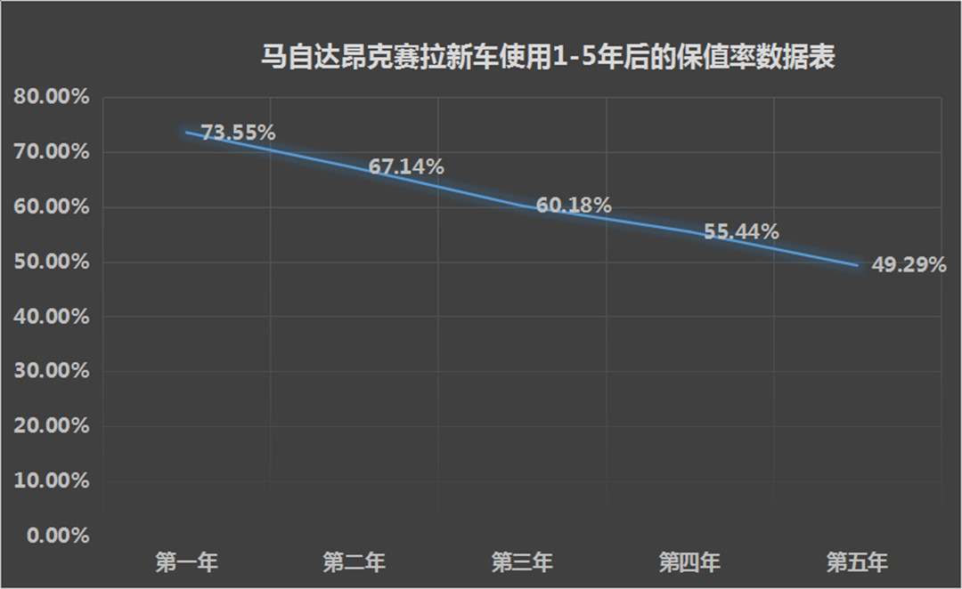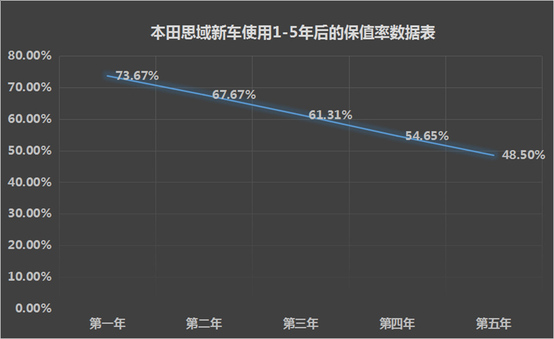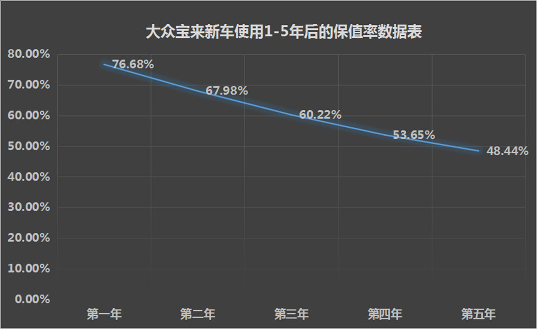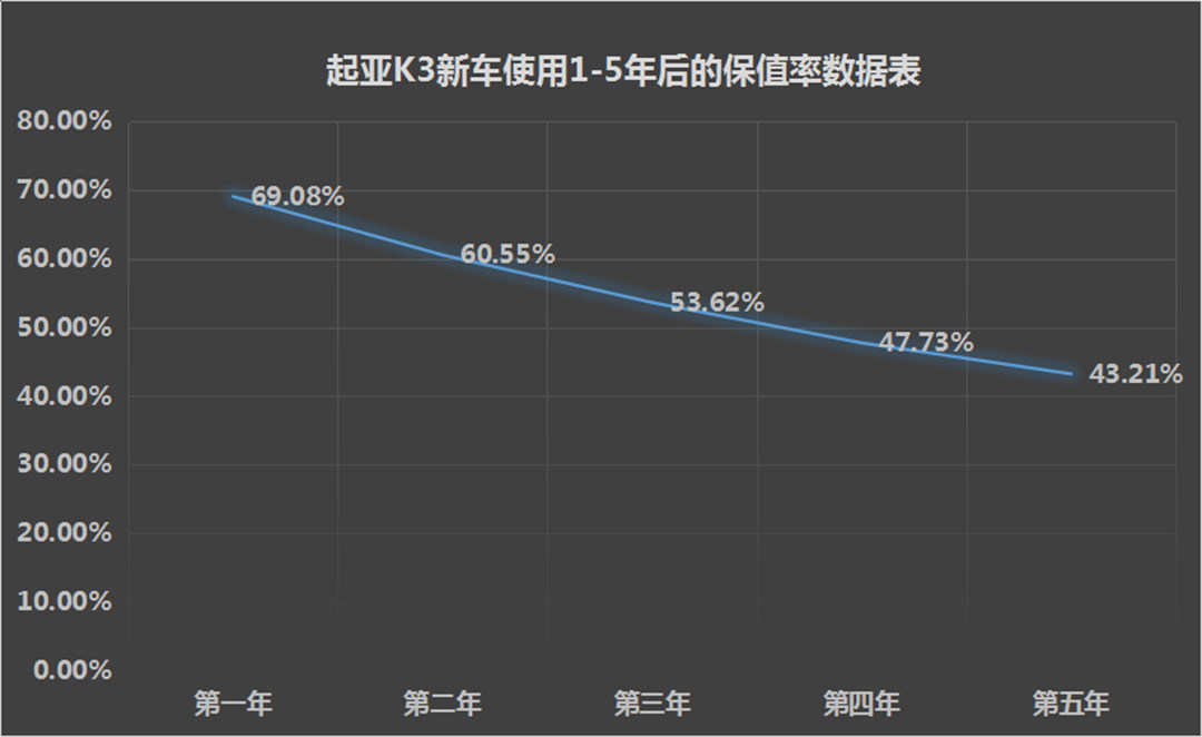 保值率就更不用说了,性价比高,消费者喜欢,卖得好,保值率自然也就不会低到哪里去,即使到了第五年,它的保值率也有52%左右。