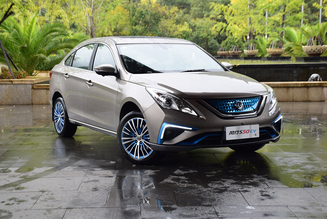 新款风行S50EV外观与现款车型差别不大,锐利的组合式前大灯、L型LED日间行车灯、LED半月形尾灯,都是风行S50EV的外观特征。