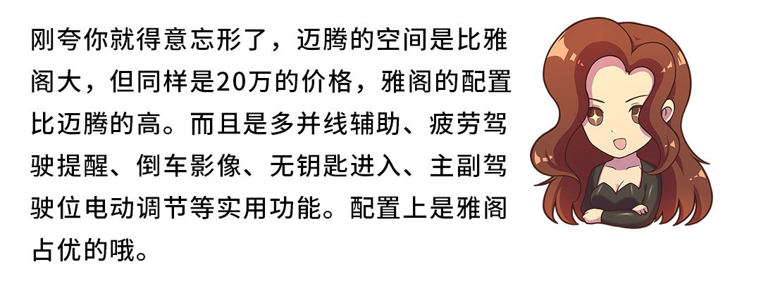 买迈腾或者买雅阁,看个人,这两辆都是好车,年轻人喜欢外观运动的雅阁多一点;到了一定年纪则喜欢有内涵的迈腾多一点。当然,这两辆车面向的人群并没有那么狭义,还是那句话,合适的才是最好的。