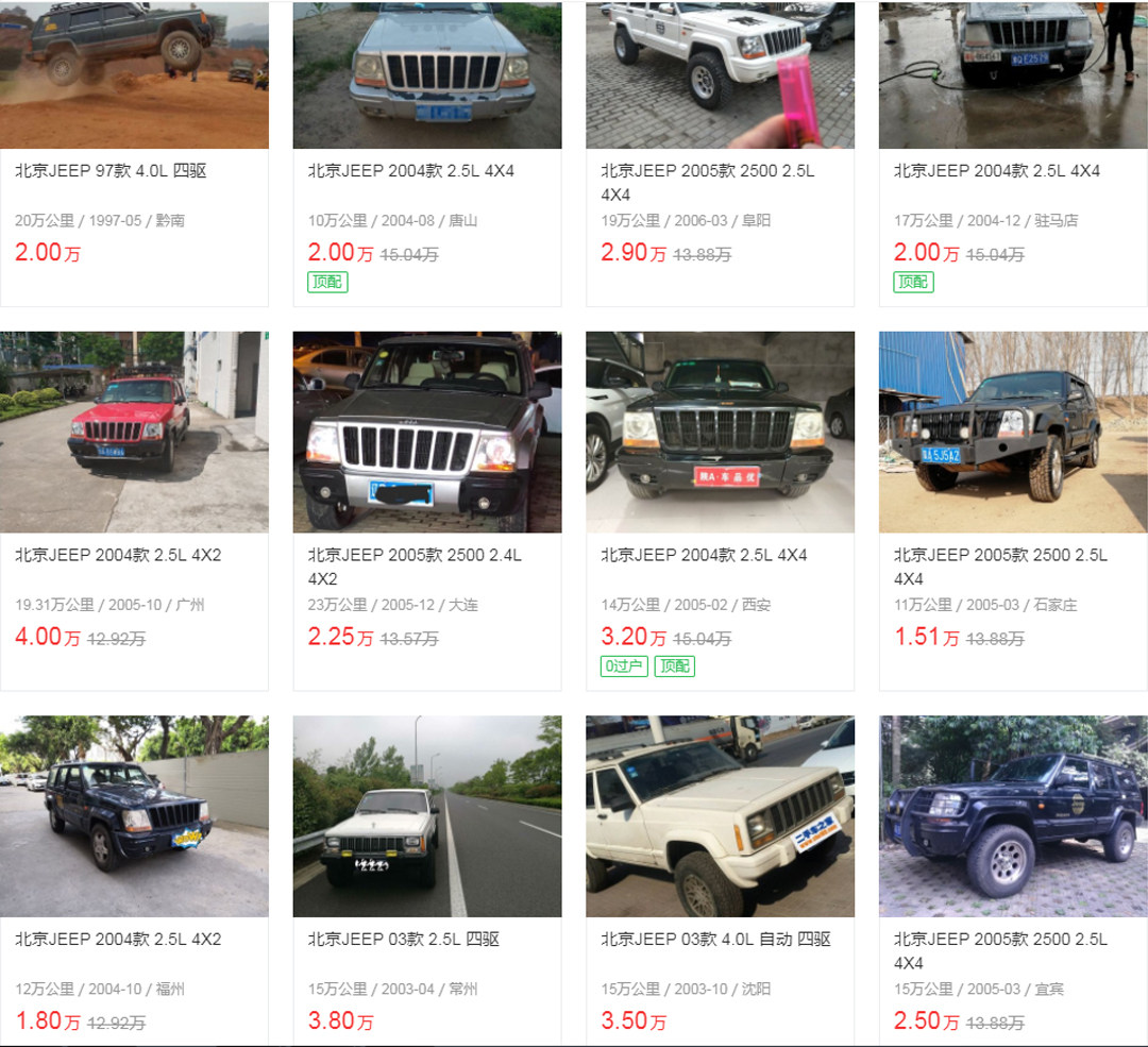 虽然如今的切诺基已经再不国产,而服役的已经到了暮年,不过就是因为这样二手的价格可以用超低来形容,考虑到它的排气标准已经不符合年审标准,加上自古坊间有传“开不坏的桑塔纳,修不好的切诺基”,假如您需要一个穿越无人区的玩具而完全不需要城市日常使用,乱碰乱撞,维修简单,零件众多,选它准没错!