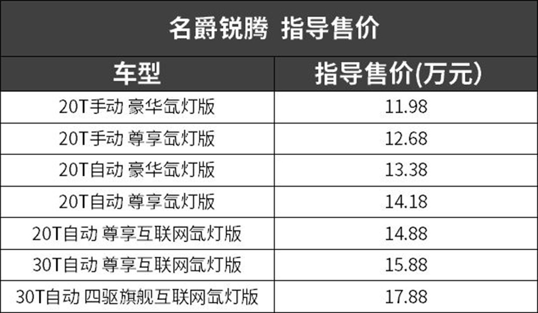 日前,上汽乘用车对外宣布,名爵锐腾氙灯版正式上市,新车将推出2种动力共计7款车型,售价区间为11.98-17.88万元。新车主要在配置方面进行提升,将氙气大灯升级为标配,同时像LED日间行车灯、自动双区空调、后排出风口等均列为标配。动力方面,新车将继续搭载1.5T/2.0T发动机,最大功率分别为169马力和220马力,峰值扭矩分别为250牛·米和350牛·米,匹配7速双离合或6速双离合变速箱,顶配车型还将配备有四驱系统。基本不变的售价,大幅增配的配置,都让名爵锐腾成了同级别极有性价比的存在,正在纠结一款紧凑级SUV的你不妨关注一下。