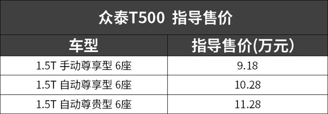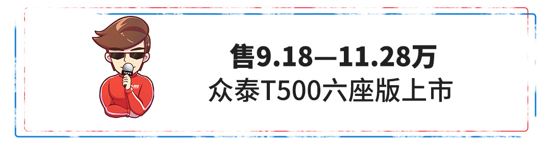 日前,众泰T500六座版正式上市,新车将推出一种动力共计3款车型,售价区间为9.18-11.28万元。六座版在外观设计上延续了5座车型的风格,内饰设计上,新车最大的特点在于采用了2+2+2式的六座布局,但第二排座椅并非独立式设计。除此之外,新车内饰与在售T500保持一致。动力方面,众泰T500六座版搭载1.5T发动机,最大功率156马力,峰值扭矩215牛·米,匹配5速手动或6速自动变速箱。六座版本车型的推出,无疑将进一步覆盖更多消费群体,对乘坐空间有刚需的家庭用户不失为一个不错的选择。
