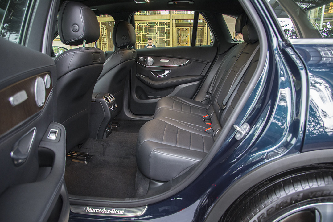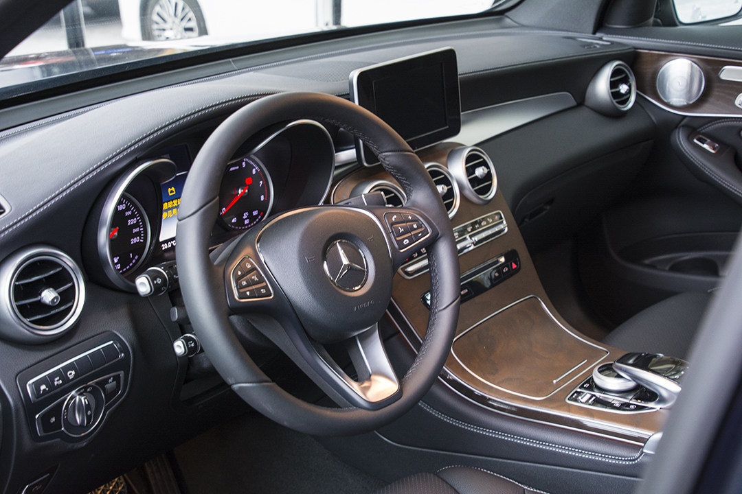 由于这并不是一款垂直换代的车型,所以在内饰整体布局层面并不会有太明显的变化,或许很多人会期待它换上如同S级那般的整体式液晶屏幕,整个内饰氛围依旧维持了现状,但细腻的用料和档次感十足的配色方案依旧在表明一辆奔驰品牌的车型应该给予观众怎样的豪华质感,车内最为重要的变化在于加长了100mm的轴距之后,GLC长轴版的轴距参数达到了2973mm,这在中型SUV中已经绝对不是一个小数,仅在视觉效果上与标轴版本的GLC相比,也可看出明显的后排空间变化;后排乘客的腿部空间无疑有了更为宽敞舒适的表现.