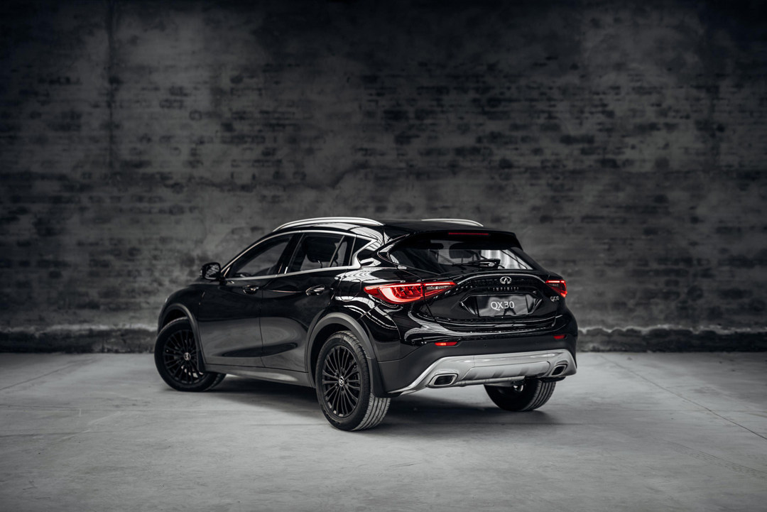 英菲尼迪QX30与奔驰GLA同源,是两间车厂高度合作之下的产物,外观上代有英菲尼迪的特点,与GLA的风格不同,QX30主要用硬线条来营造运动的感觉,相比起GLA,QX30的大灯尺寸更小,更加犀利。弯月形的镀铬装饰条作为英菲尼迪的家族元素当然不会缺席,车尾也是与GLA一样的高耸造型,但尾灯更加细长。