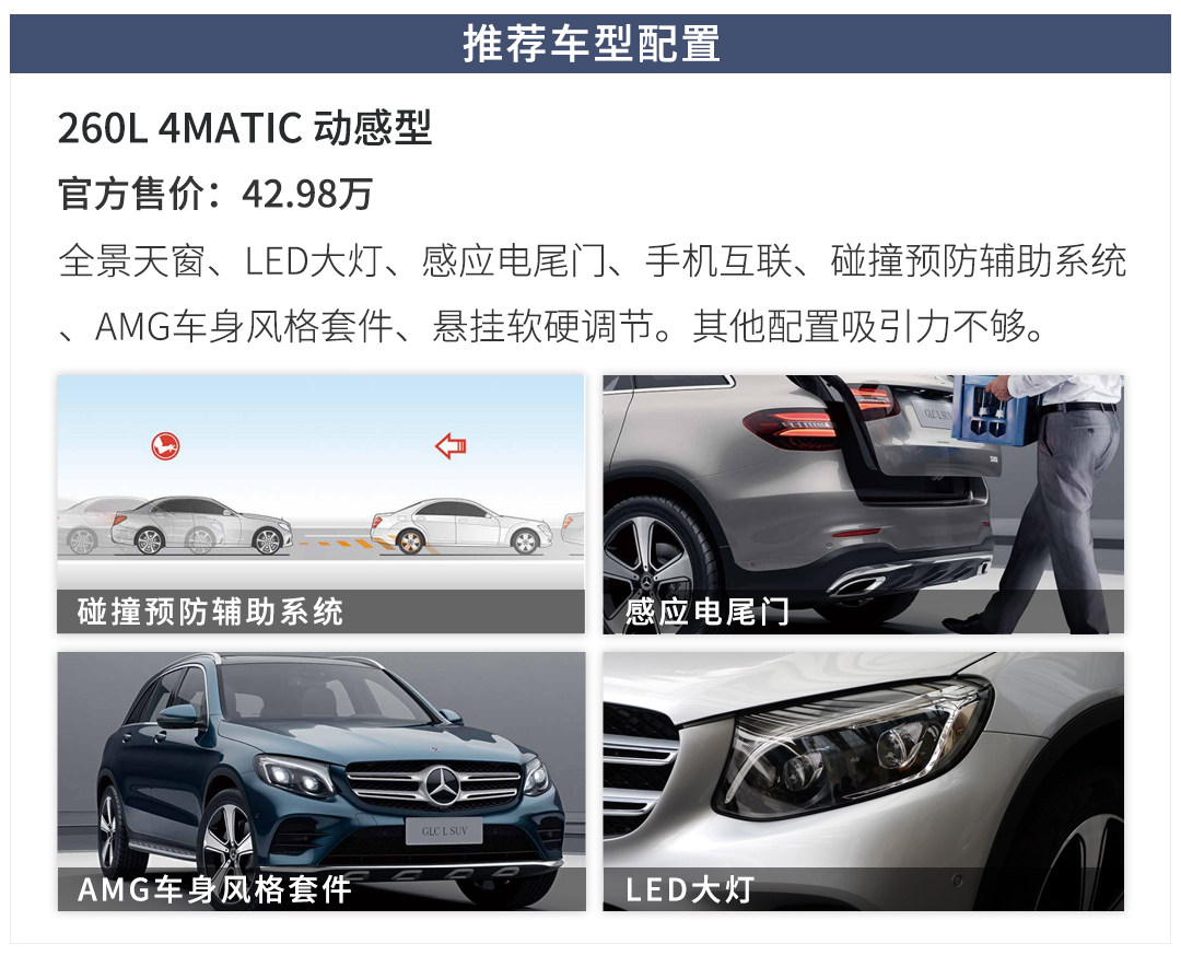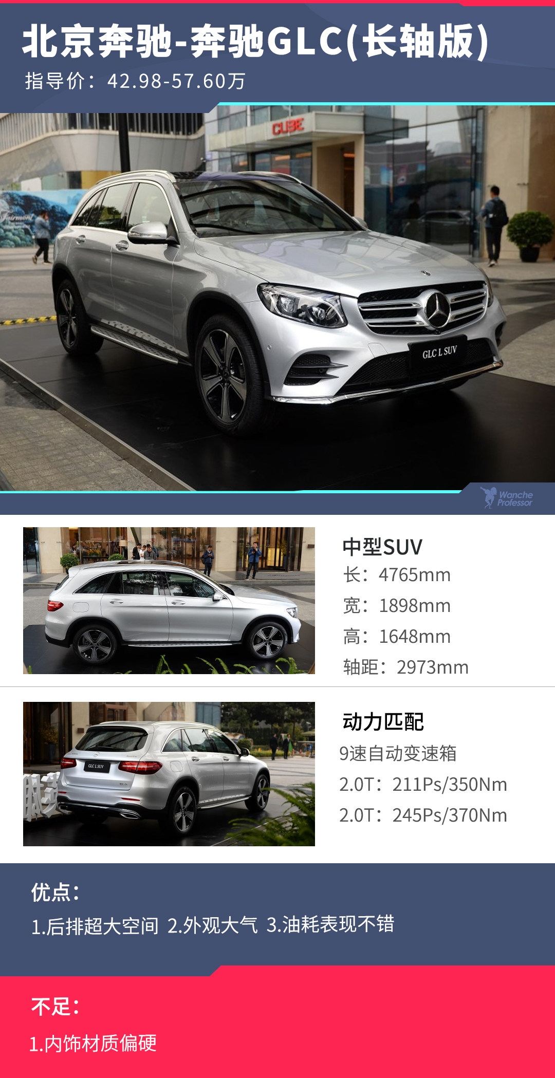 其实奔驰GLC这次推出的长轴版有一点还是比较遗憾的,就是没有200L的版本,如果推出200L版本的话,相信门槛价会更低。但目前推出的260L/300L车型的售价其实也是在意料之中,毕竟奔驰一直以来都不会给你太多价格惊喜,而且许多新车上市还会有加价的可能性,但就目前上市的GLC长轴版来看,如果大家都去买原来的标轴版(目前优惠还不错)或去买奥迪Q5L了,相信不久之后,GLC长轴版也会下放优惠。