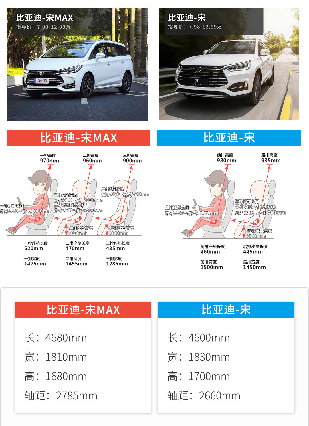 通过与同品牌同价位的SUV比亚迪宋的对比可以看出,在车身尺寸相近的情况下,宋MAX拥有更长的轴距,还提供6座、7座车型,这让宋MAX比宋拥有更高的实用性。其次,轿车化的底盘让宋MAX拥有更低的离地间距,更便于车内乘客的上下车,这无疑对于有老人或者小孩的家庭更加友好。加上7.99-12.99万元的亲民售价以及较高的颜值,让宋MAX火了一把。