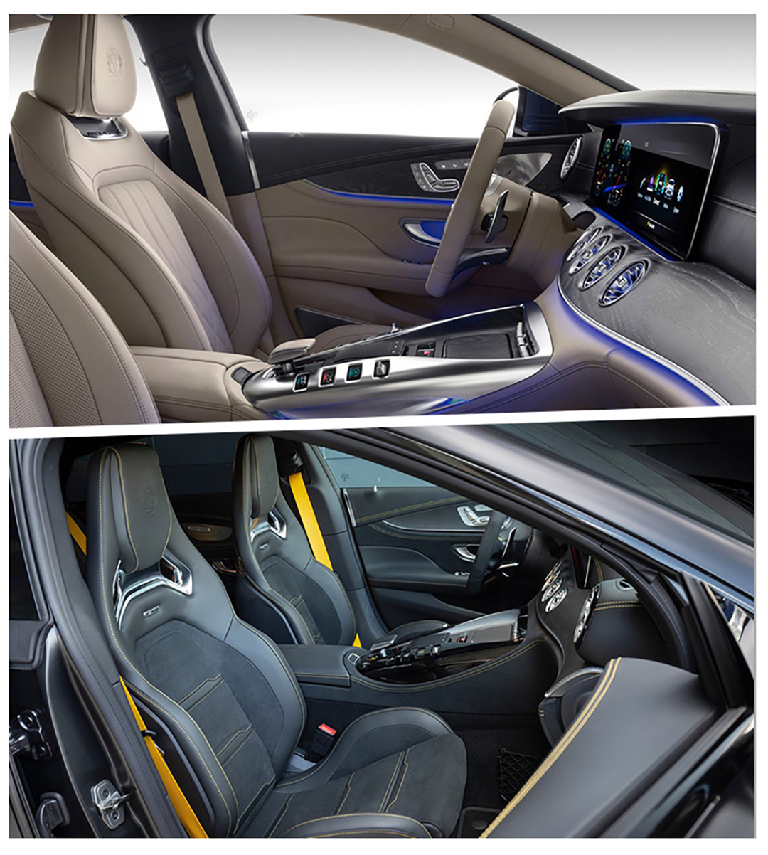在座椅方面,AMG GT 4门跑车可针对不同的使用场景来进行选配,前座可选偏向舒适的运动型座椅或者带有整合式头枕并且包覆性更强的高性能桶型座椅。