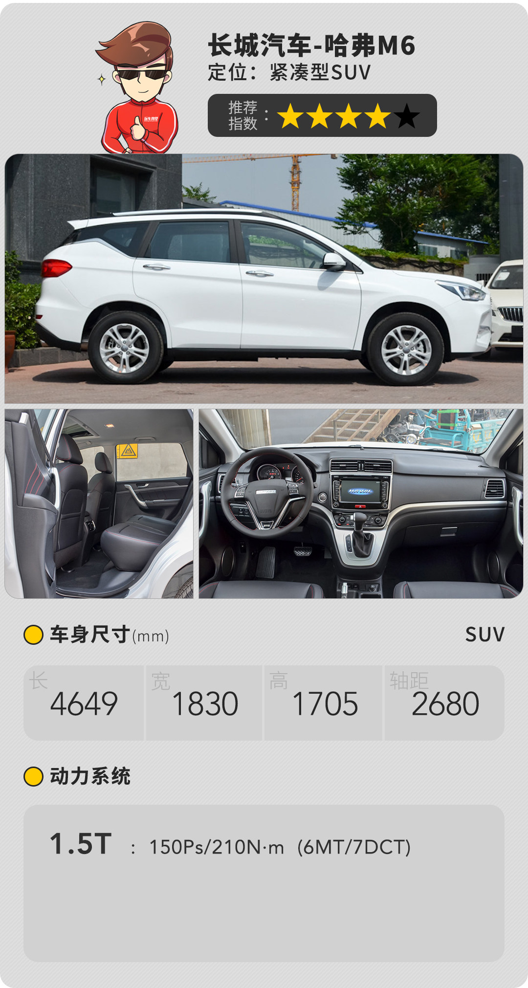 既然是从老款H6过度来的,像是极大的车厢空间、HVH做得不错、手动车型挂挡舒服M6也都照单全收。至于缺点,诸如发动机技术老旧,油耗不低,方向盘稍沉。但总的来说,花6.6万就能买到这样一款SUV,在以前也就只能作梦了。