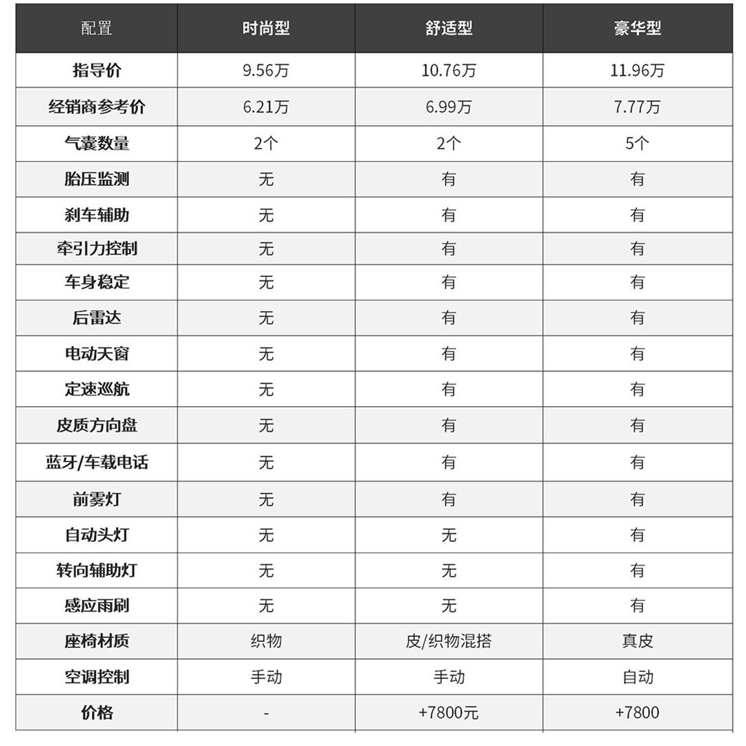 所以,如果是汽车安全有着较高要求的,可以去选择豪华型,因为最重的落地价格也就十万左右。低配车型基本的安全配置都没有,不推荐选择。普通的消费者选择中配车型就可以了。