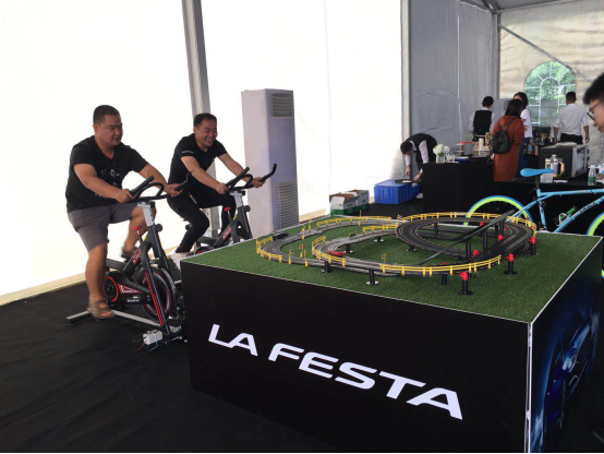 值得一提的是,现场还设置了拥有轻奢情调的现磨咖啡、精巧糕点,以及新生代热衷的互动项目:动感单车发电驱动轨道赛车,无处不显LA FESTA菲斯塔极速·盛宴元素。