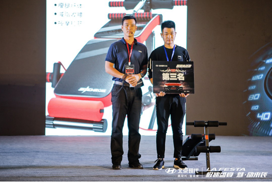 在公平、公正、公开的计时统计后,教练为全场公布挑战赛三强,三位能者分别带走了智能扫地机器人、荧光实心单车、仰卧健身器三项大奖。