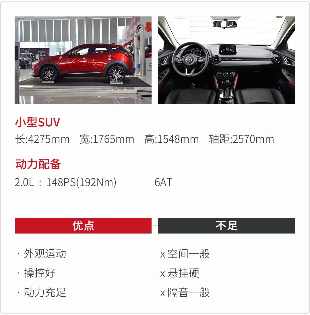叫好不叫座是很多朋友拿来形容马自达车型的,而CX-3也是其中的代表,一方面它有着同级别中非常出色的驾驶感受和乐趣,另一方面在保有量、空间、价格等严重制约了它的市场表现。如果对这车或者品牌是真爱,是可以选择马自达CX-3的。